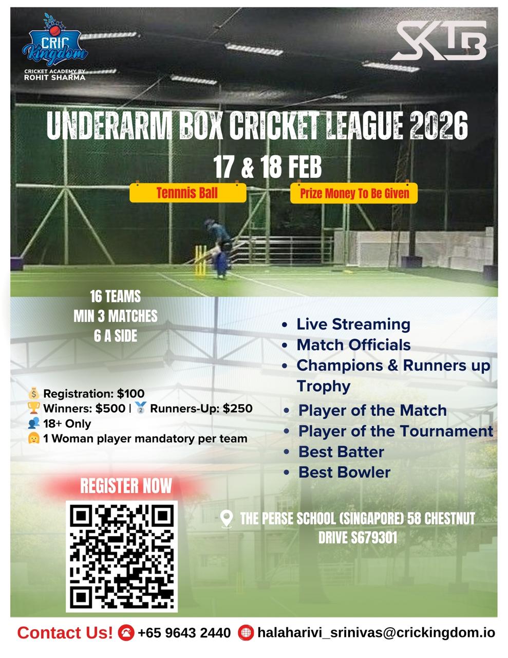 Compete in a fast-paced indoor box cricket league featuring official umpires, live streaming, trophies, and cash prizes.